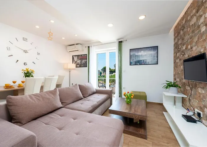 Oferujący Gościom autobus wahadłowy, Charming Apartment Ines o powierzchni 66 m^2 znajduje się 20 km od lotniska Dubrownik. Wzgórze Srđ i Uniwersytet w Dubrowniku znajdują się odpowiednio w odległości 10 min samochodem i maksymalnie 9 min spacerem od apartamentu.